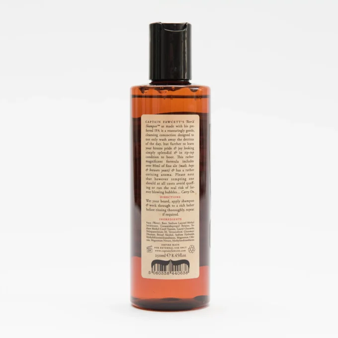 Apdovanojimą pelnęs kapitono Fawcett’o šampūnas „Beer’d Shampoo®”, kurį jis pagamino naudodamas savo mėgstamą IPA, yra labai švelnus, skirtas ne tik nuplauti dienos dulkes, bet ir suteikti jūsų garbanotam pasididžiavimui ir džiaugsmui puikią išvaizdą. Šią nuostabią formulę sudaro daugiau kaip 80 ml gero elio (salyklo, apynių ir alaus mielių) ir gardžiai viliojančio aromato.