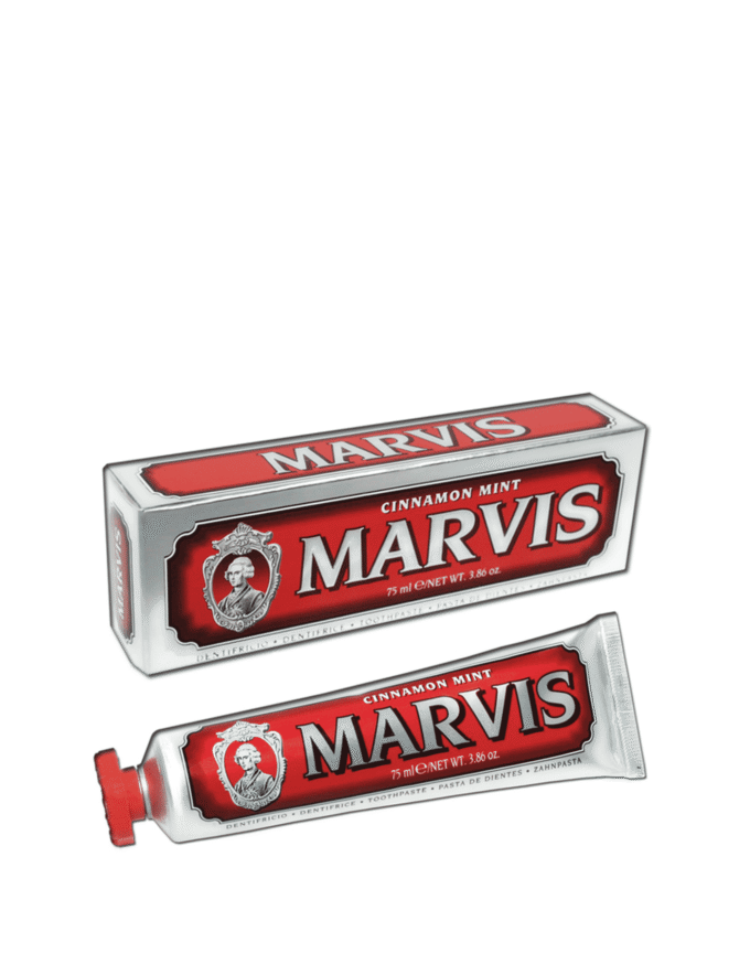 Cinamono mėtų skonio gaivinanti, švelnios tekstūros dantų pasta naikina apnašas, kad šypsena būtų spindinčiai balta. Egzotinis cinamono saldumas ir gaivinantis mėtų skonis ilgai išlieka burnoje. Orginali Marvis formulė balina ir apsaugo dantis, palaiko gaivą burnoje, padeda išvengti karieso, akmenų ir apnašų susidarymo. Patraukli matinė aliumininė tūbelė ir subtilus dangtelis, kaip mažas meno kūrinys, kuris puikiai papuoš Jūsų vonios kambarį.