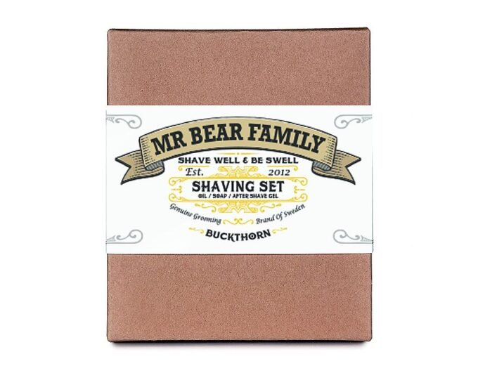 Mr Bear Family skutimosi rinkinį sudaro Mr Bear Family skutimosi aliejus, Mr Bear Family skutimosi muilas ir Mr Bear Family losjonas po skutimosi.