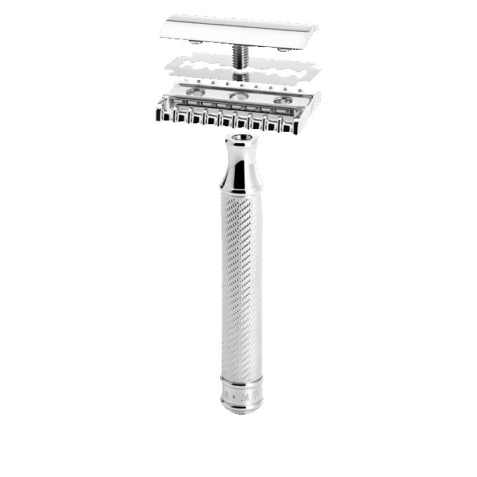 Šį klasikinį skutimosi reikmenį su nuimamais peiliukais MÜHLE gamina dviejų versijų. Saugus skustuvas su atviromis šukomis palengvina ypač tiesioginę skutimosi techniką išrankiausiems ekspertams. Skutimas su uždaromis šukomis yra švelnesnis, nors rezultatas toks pat tikslus ir kruopštus. Maloniausias iš visų priežiūros ritualų, žinoma, yra prie jo derantis skutimosi šepetėlis. Klasikinis gaminys pagamintas iš chromuoto metalo.