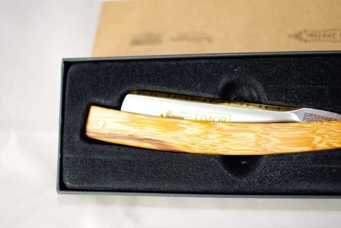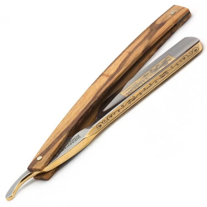 Neapsakomai aštrus, tikslus, ypatingas peilis skutimuisi. Pilnai rankų darbo, pagamintas Vokietijoje Giesen & Forsthoff įmonėje. Ašmenys pagaminti iš anglinio plieno, rankenėlė iš akacijos medienos. Peilis pilnai pagaląstas ir paruoštas skutimuisi.